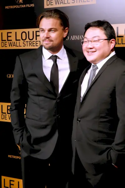 Näyttelijä Leonardo DiCaprio ja elokuvan Jho Low (oikealla) osallistuvat valokuvapuheluun ennen 'The Wolf of Wall Streetin susi' -elokuvan ensi-iltaa Cinema Gaumont Operassa 9. joulukuuta 2013 Pariisissa, Ranskassa.Bertrand Rindoff Petroff / Getty Images