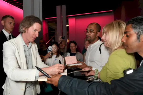 Ennen elokuvan ensi-iltaa osallistuin erityisnäytökseen BFI Southbank Lontoossa, johon sisältyi Q&A, jossa oli mukana Anderson ja jota isännöi Jarvis Cocker . Brittirock-yhtyeen Pulpin kansainvälisesti tunnustettu keulahahmo Cocker on Andersonin pitkäaikainen ystävä ja yhteistyökumppani. Hän esittää yhtä musiikkia soittavista cowboeista Asteroidi kaupunki ja siinä on kaksi kappaletta elokuvan virallisella soundtrackilla. Andersonin ja Cockerin välinen keskustelu oli täynnä henkilökohtaisia anekdootteja ja huumoria. Cockerin rutiininomaisesti unohtaessa, mitä hän aikoi kysyä ja vetäen puhelimensa katsoakseen muistiinpanojaan, Anderson otti johdon ja avasi puheenvuoron faneille yleisössä. Cocker myönsi, että hän oli kiehtonut siitä, että hän oman tunnustuksensa perusteella näytti auringonpolttaneelta ruudulla, minkä Anderson arveli, että se saattoi johtua elokuvan erityisestä väripaletista. Et luultavasti näyttänyt niin vaaleanpunaiselta kuvauksissa, hän vakuutti. Toisen keskustelun aikana Cocker pani huvittavasti merkille, että näyttelijät kulkivat kuvauksissa kuvakäsikirjoitusta sisältävän iPadin ympäriinsä melkein kuin yhdessä, mikä sai ohjaajan ja yleisön nauramaan.