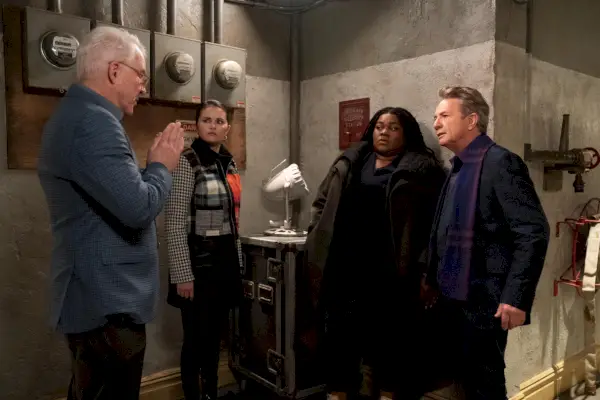 Steve Martin, Selena Gomez, Da’Vine Joy Randolph ja Martin Short kaudella 3 Vain murhat rakennuksessa .Patrick Harbron/HULU